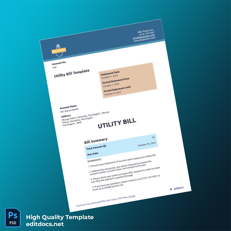 Why Choose ABC Powers Inc Editable Utility Bill Template?