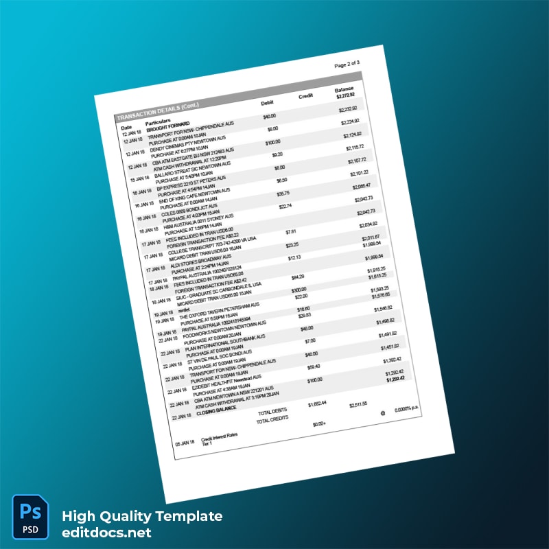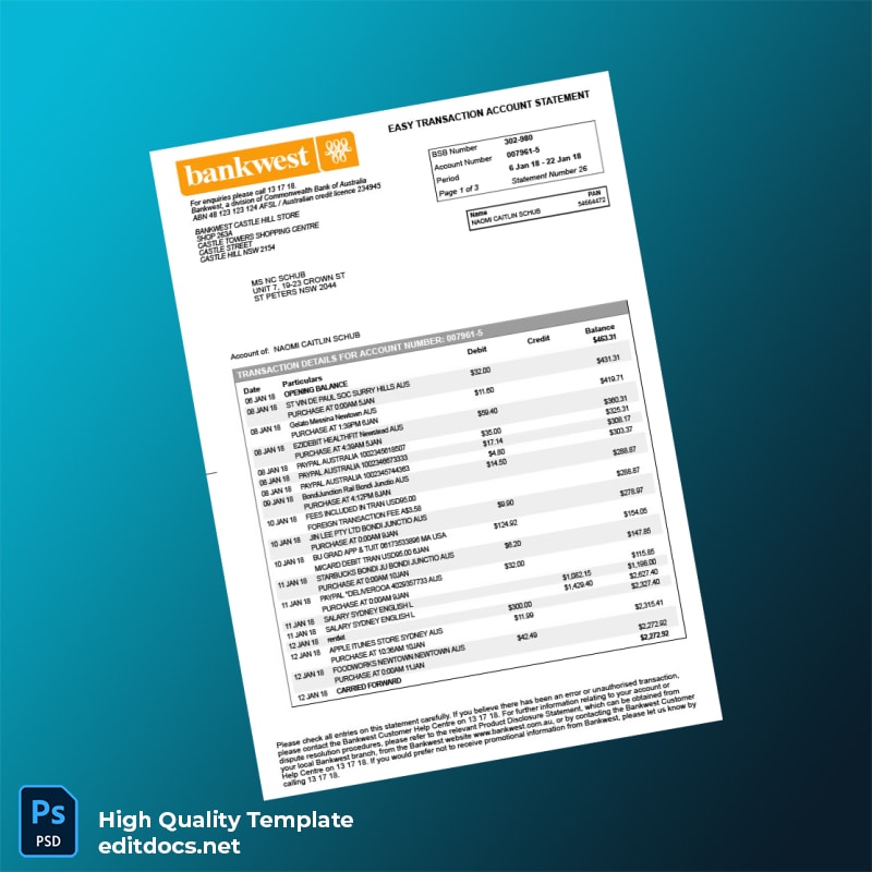 Elevate Your Financial Documentation with our Australia Bankwest Bank Statement Template