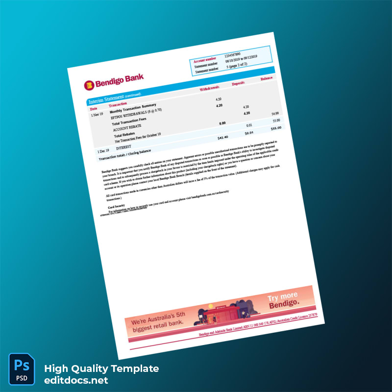 Transform Your Financial Documentation with Our Australia Bendigo Bank Statement Template