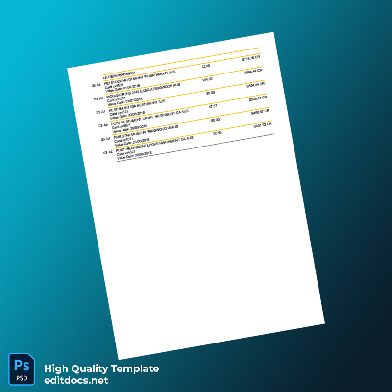 Australia ING Bank Statement Template – Editable & Professional