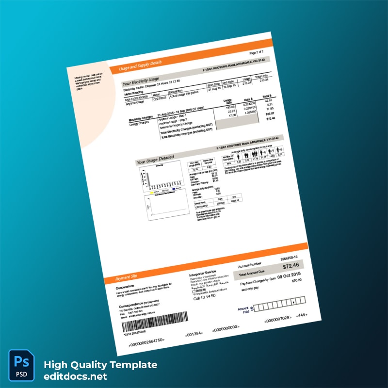 Australia Lumo Energy Editable Electricity Bill Template: Professional Utility Bill Proof of Address Solution