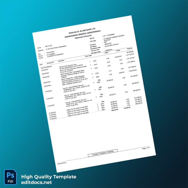 Bangladesh BankUltimus Bank Statement Template in Word and PDF formats