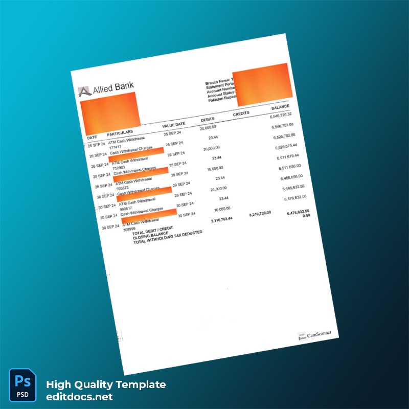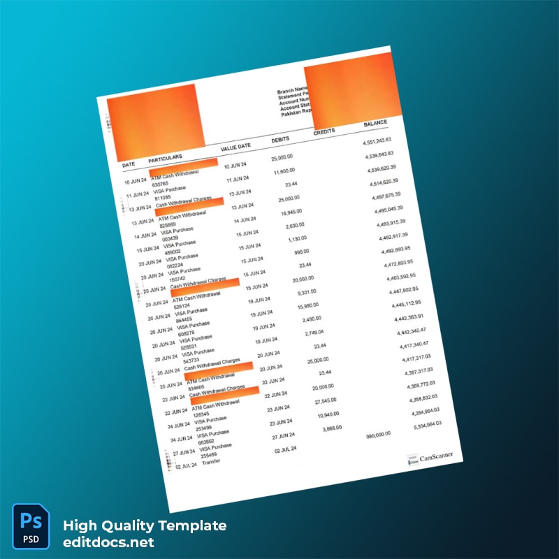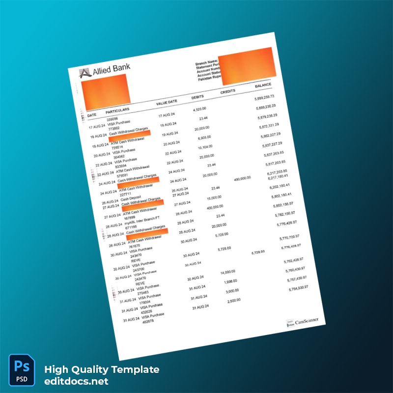 Be the first to review “Bank Statement Sample – D Template in Word and PDF formats 8 page”