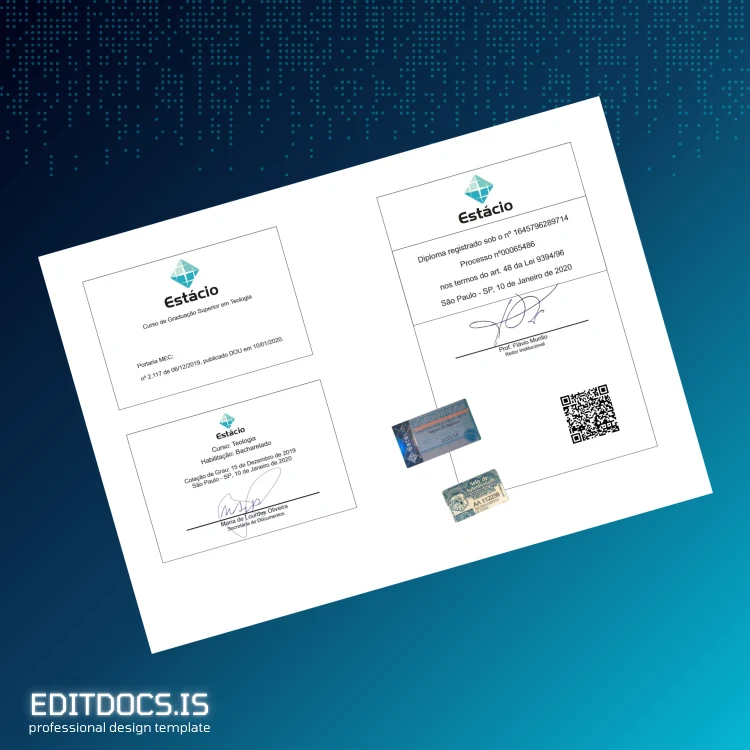 Be the first to review “Brazil Estácio de Sá University Bachelor of Theology Template (Word & PDF) Replacement Copy 2 Page”