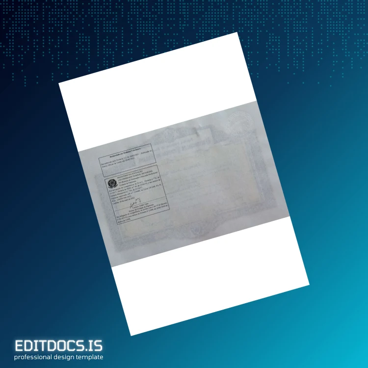 Experience a seamless way to obtain a professional diploma replica with the Brazil Federal University of Paraná Veterinary Medicine Diploma Template (Word & PDF). This high-quality digital document is ideal for those seeking a precise and customizable solution for diploma restoration or backup. Whether you need a replacement due to loss, damage, or simply want a neat digital copy, this template ensures efficiency and ease.