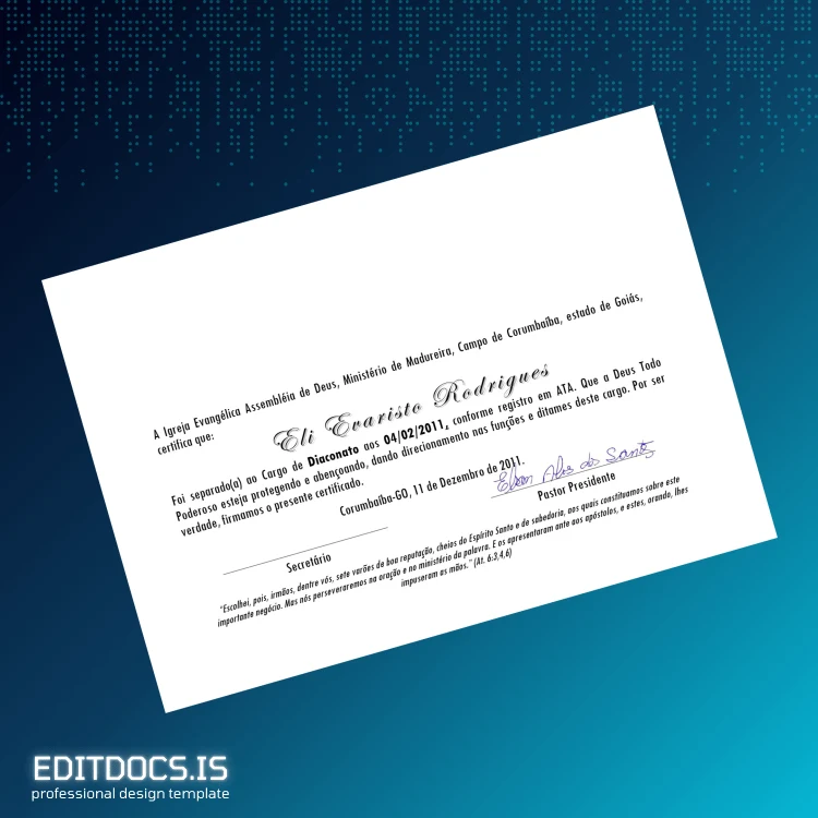 How to Create Your Brazil Igreja Evangélica Assembléia de Deus Diaconate Diploma Template (Word & PDF) in Minutes