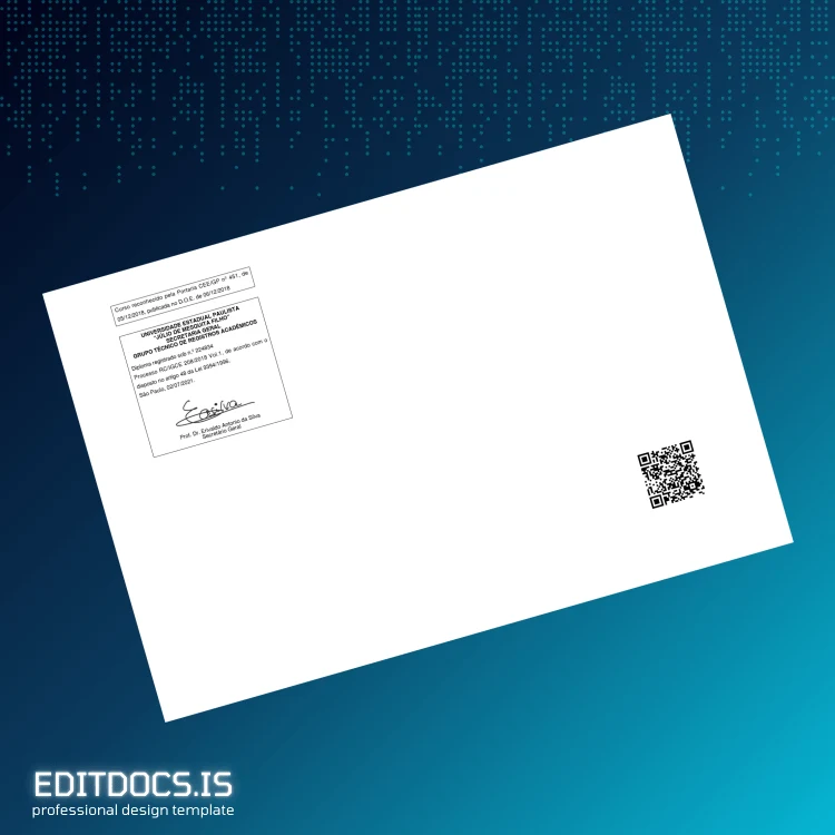 This editable diploma template offers an easy and efficient way to produce a professional Bachelor of Geography degree certificate for the Brazil Universidade Estadual Paulista _Júlio de Mesquita Filho_. Designed for those in need of a replacement copy or backup, this customizable degree template comes in Word and PDF formats, ensuring compatibility and convenience. Whether you are restoring a lost diploma or creating a novelty diploma design, this blank diploma form is tailored to meet your specific needs with high resolution and professional quality.