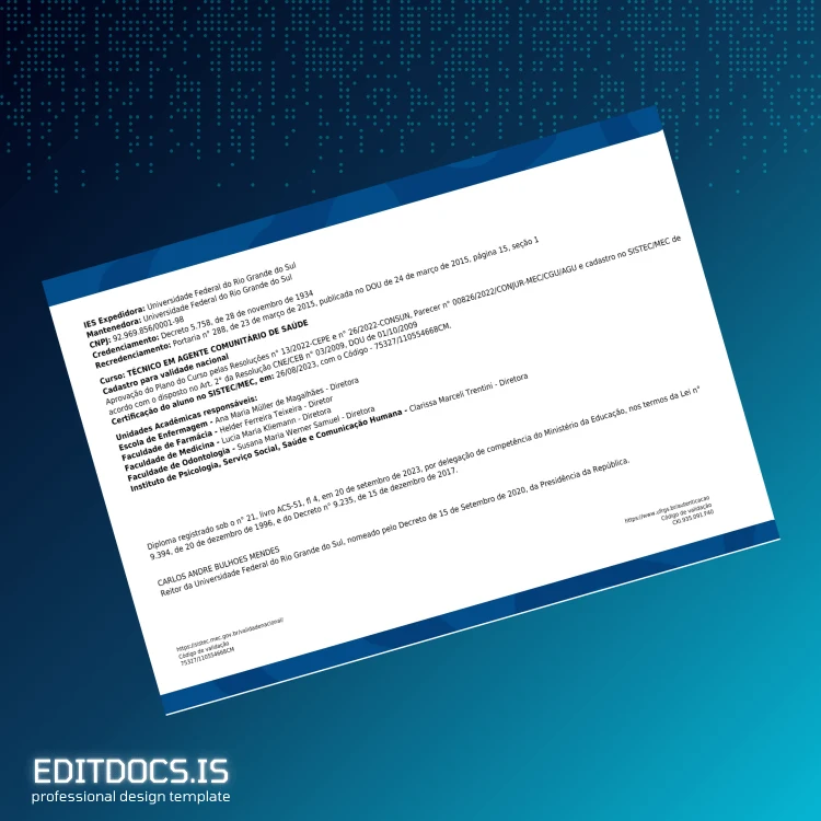 How to Create Your Brazil Universidade Federal do Rio Grande do Sul Technical Diploma in Community Health Agent Template (Word & PDF) in Minutes