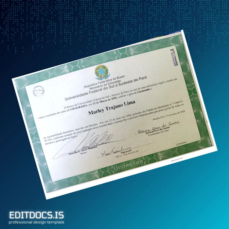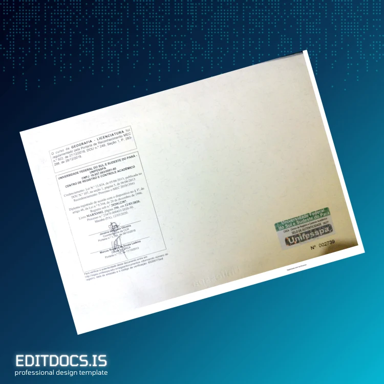 Easily edit your Brazil Universidade Federal do Sul e Sudeste do Pará Bachelor of Arts in Geography Template (Word & PDF) for a quick, professional diploma update.