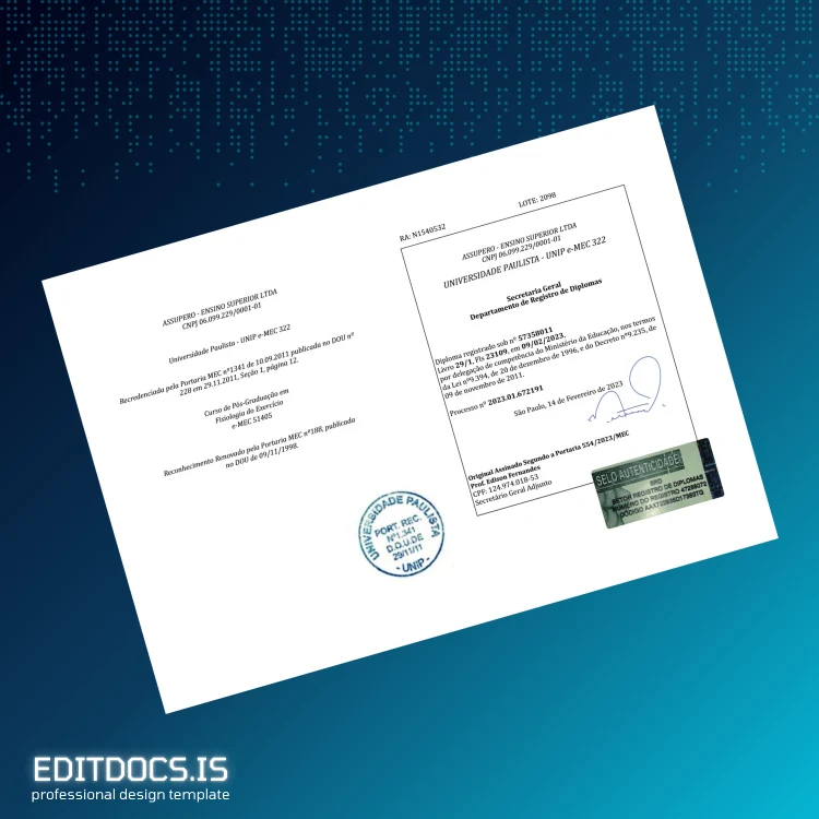 How to Create Your Brazil University Paulista Postgraduate Diploma in Physiology Template (Word & PDF) in Minutes