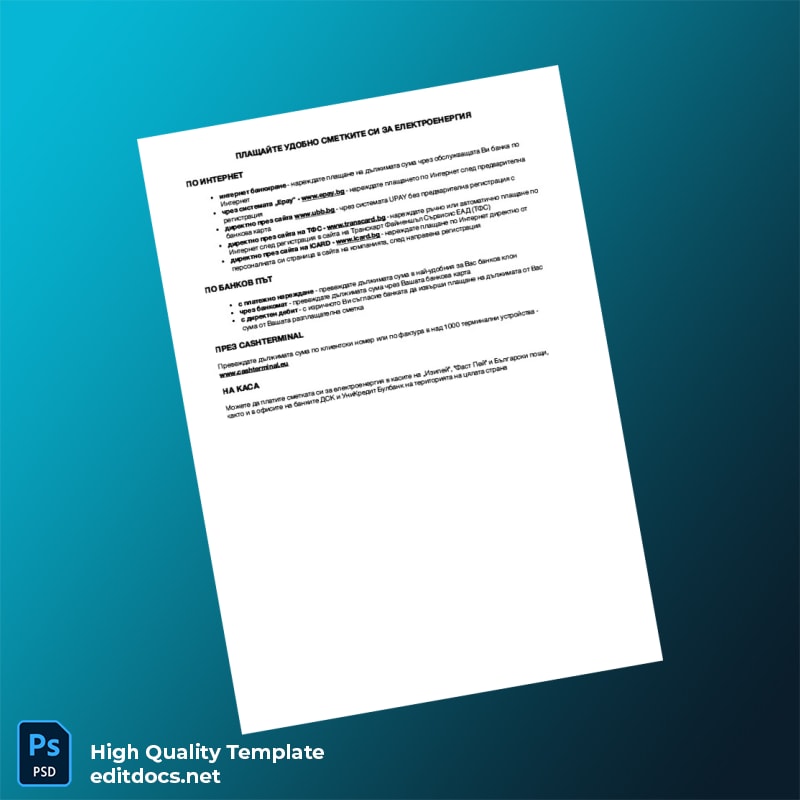 Professional Benefits of Bulgaria CEZ Electro Editable Utility Bill Template
