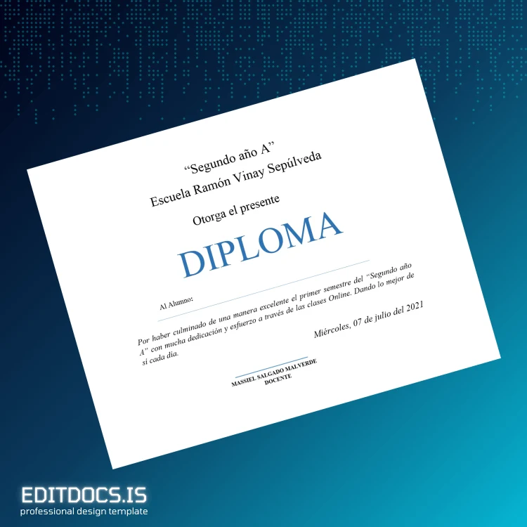 Embrace the convenience of a digital diploma download that grants complete control over your document’s content and appearance. This replacement diploma template is an essential tool for anyone needing a fast, authentic, and editable copy of the Chile Escuela Ramón Vinay Sepúlveda diploma.