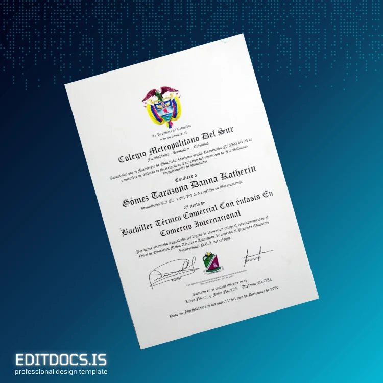 How to Create Your Colombia Colegio Metropolitano del Sur Bachelor of Technical Commercial Education with Emphasis in International Business Diploma Template (Word & PDF) in Minutes