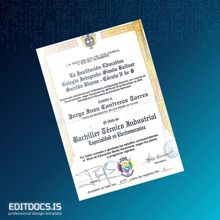 How to Create Your Colombia Colegio Integrado Simón Bolívar Technical High School Diploma in Electromechanics Template (Word & PDF) in Minutes
