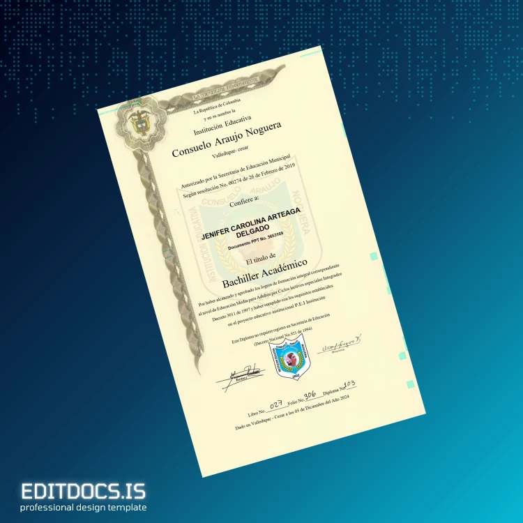 How to Create Your Colombia Consuelo Araujo Noguera Academic Bachelor Diploma Template (Word & PDF) in Minutes