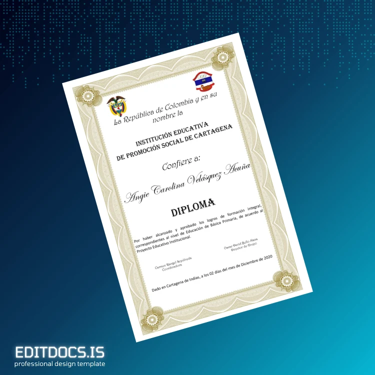 How to Create Your Colombia Educational Institution for Social Promotion of Cartagena Primary Education Diploma Template (Word & PDF) in Minutes