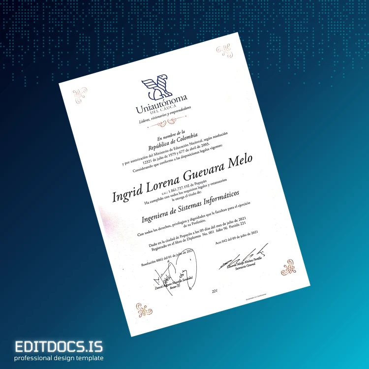 How to Create Your Colombia Uniautónoma del Cauca Engineer of Information Systems Diploma Template (Word & PDF) in Minutes