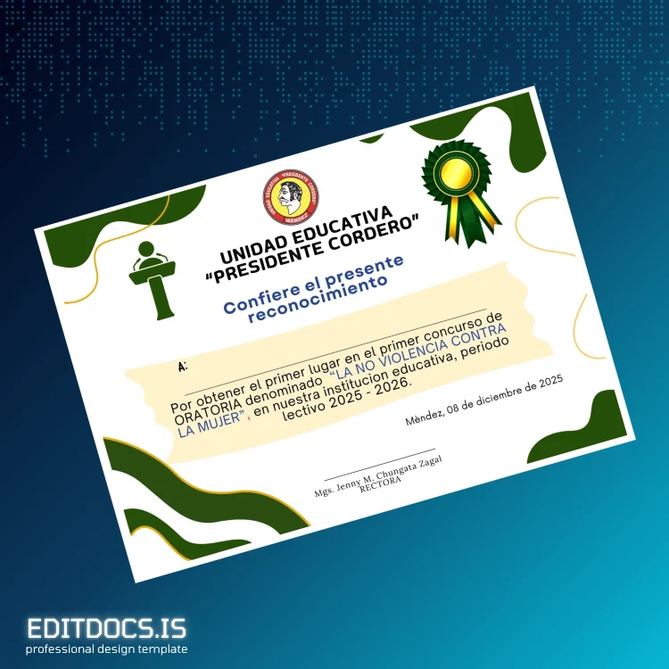How to Create Your Ecuador Unidad Educativa Presidente Cordero Diploma in Oratory Certificate Template (Word & PDF) in Minutes