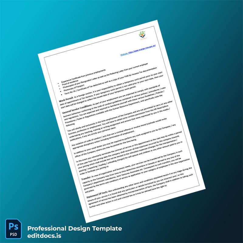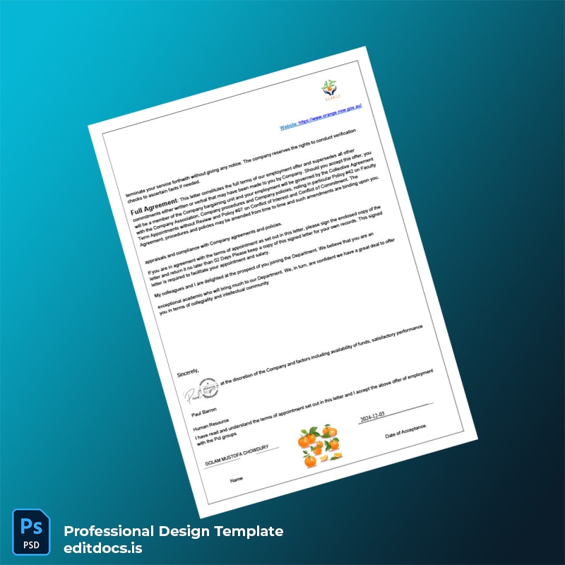 Editable Australia Orange Botanic Gardens Employment Verification Letter Template (Word & PDF) 3 page