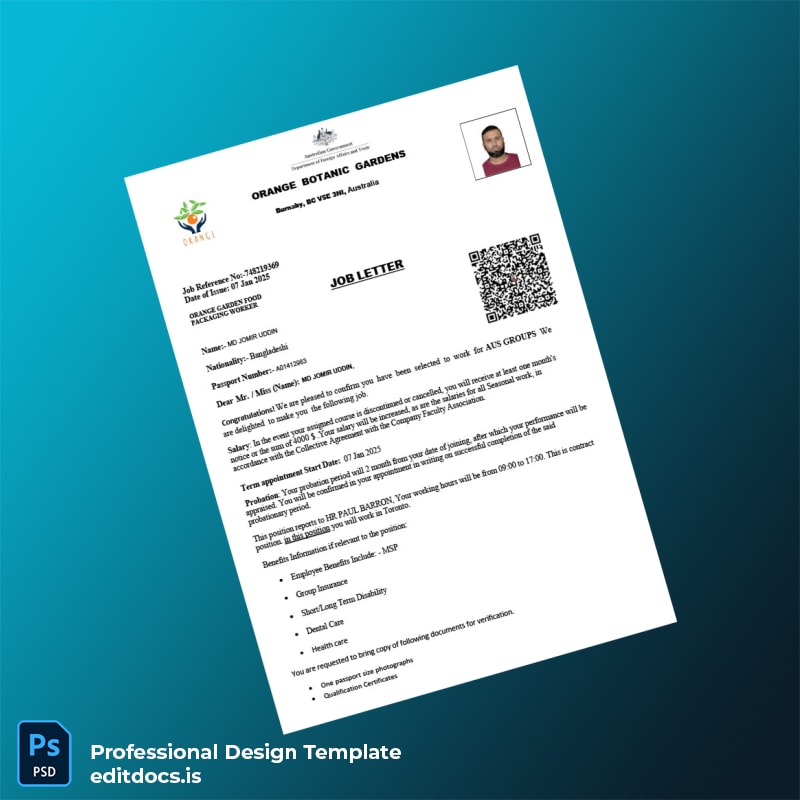 Ensure your employment records are professionally documented with this Editable Australia Orange Botanic Gardens Employment Verification Letter Word and PDF Template. Designed for HR professionals and administrative staff, this template offers a seamless solution to quickly generate accurate proof of employment letters tailored to your organization’s specifics.