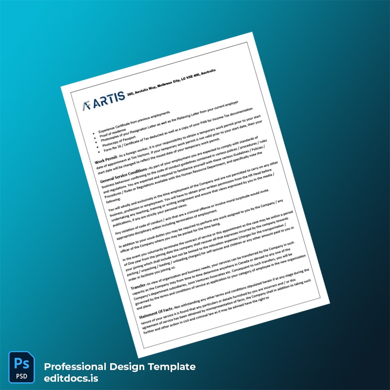 Be the first to review “Editable Australia Paul Barron Employment Verification Letter Template (Word & PDF) 3 page”