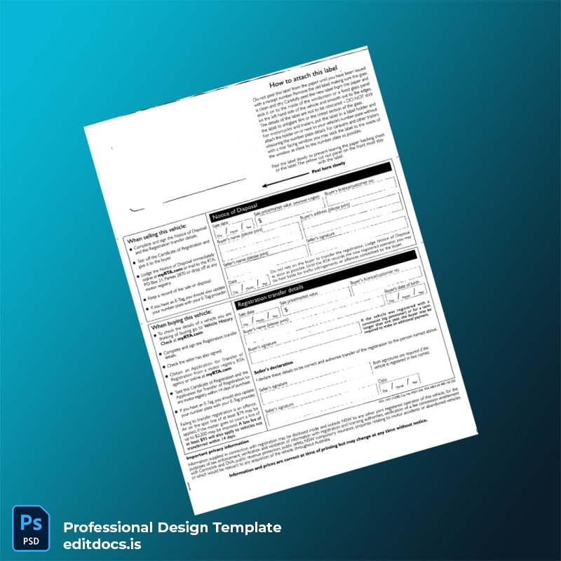 Editable Australia RTA Certificate of Registration Template (Word & PDF) 2 page