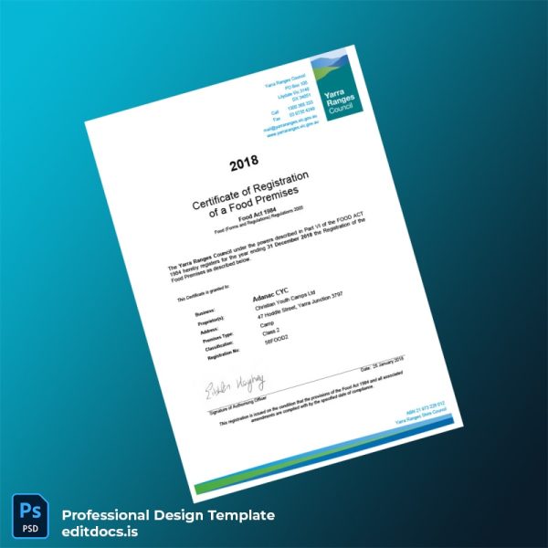 Streamline Your Business Registration with the Australia Yarra Ranges Council Registration Certificate Template