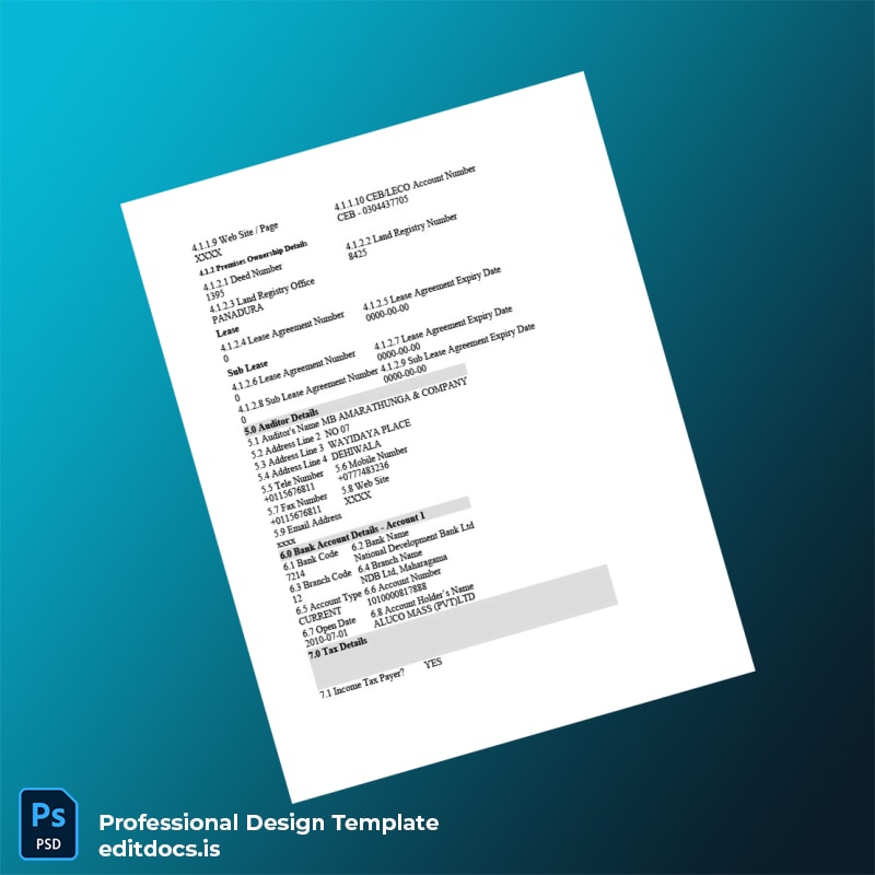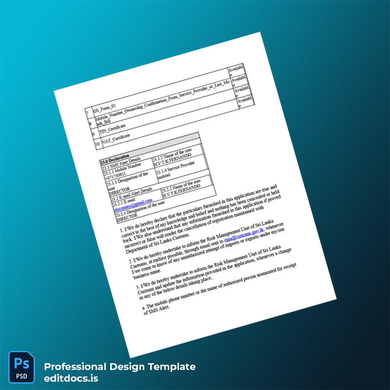 Editable Country Document Type Title Business Business Registration Certificate Template (Word & PDF) 6 page