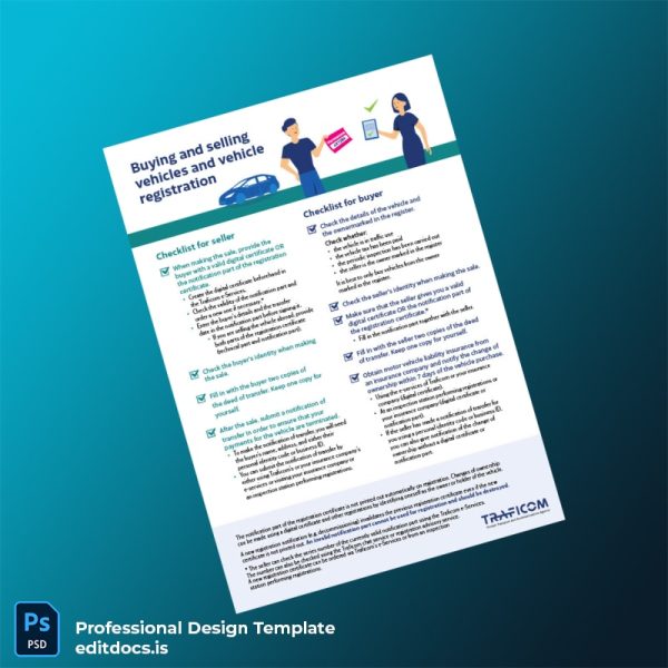 Effortlessly update and customize your vehicle registration documents with the Finland Traficom Vehicle Registration Certificate Template, available in fully editable Word and PDF formats. Designed to meet the needs of professionals requiring an accurate and professional replacement or new registration certificate, this template ensures precision and convenience at your fingertips.