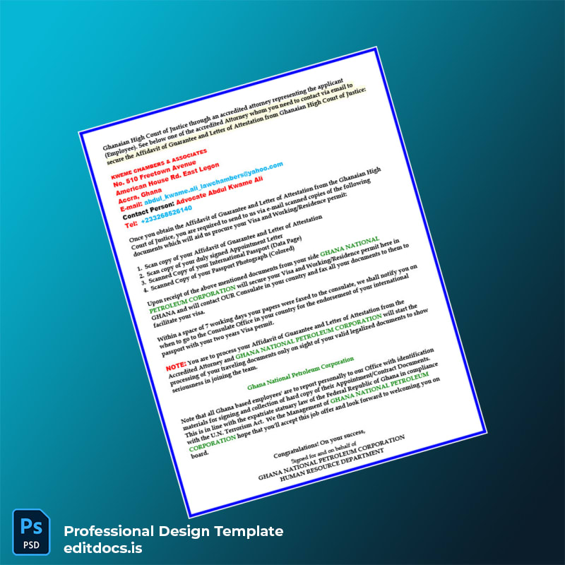Experience a seamless way to confirm employment with our Editable Ghana National Petroleum Corporation Employment Verification Letter Word and PDF Template. Designed specifically for professionals who need reliable and quick documentation, this template allows for easy customization and fast generation of official letters in both Word and PDF formats.