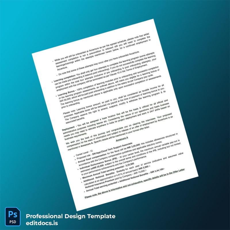 Experience a stress-free method to create your employment verification letter with this easy-to-edit template. Ensure your documentation is always up to date and compliant with professional standards. Purchase the Editable India Accenture Employment Verification Letter Word and PDF Template today and confidently fulfill your employment verification needs with speed and precision.