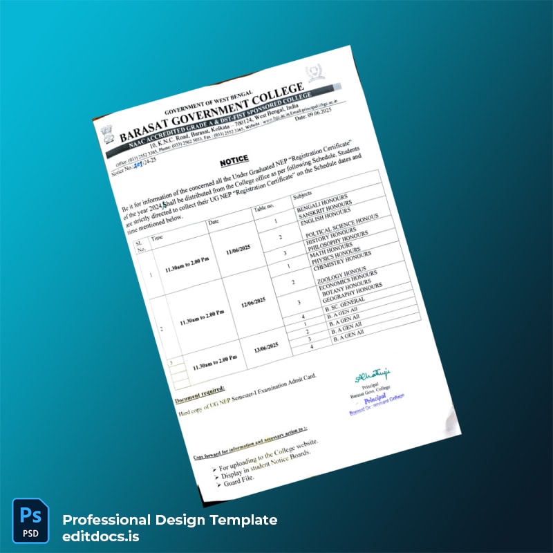 The India Barasat Government College Registration Certificate Template (Word & PDF) is designed for professionals seeking a swift, reliable solution to generate official documents without hassle. Whether you need an immediate replacement for a lost certificate or require a formal registration document template tailored for business or academic use, this editable certificate template caters precisely to those demands.