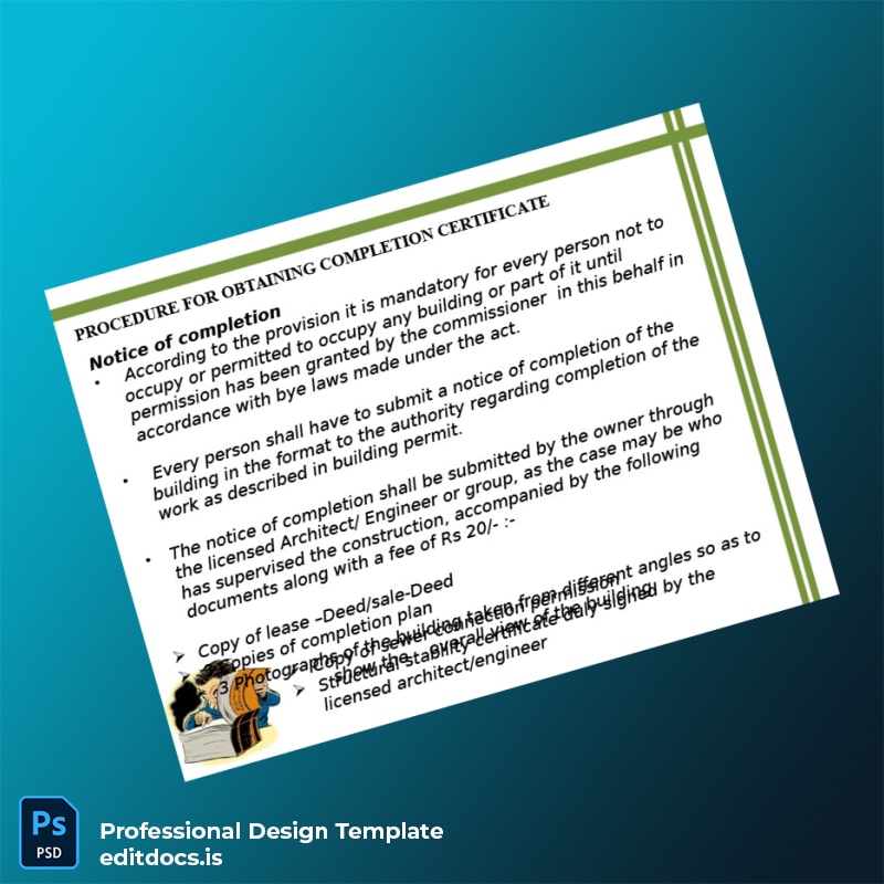 Streamline your official documentation with the Editable India Building Completion Certificate Template, crafted to combine professional quality and convenience. Designed for architects, builders, contractors, and regulatory bodies, this template simplifies generating fully compliant building completion certificates with ease and accuracy.