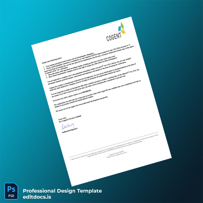 Be the first to review “Editable India Cogent E Services Limited Employment Verification Letter Template (Word & PDF) 2 page”