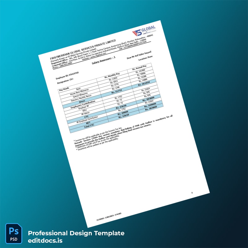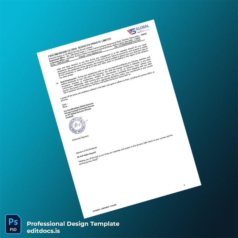 Editable India FirstMeridian Global Services Private Limited Employment Verification Letter Template (Word & PDF)