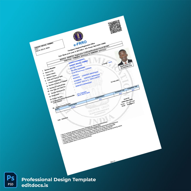 Invest in this fully editable India Foreigners Regional Registration Office Registration Certificate Template to streamline your documentation process. With user-friendly editing features and professional design, you can confidently prepare your company registration forms and certificates in moments. Get started now and experience the convenience of immediate, hassle-free certificate generation.