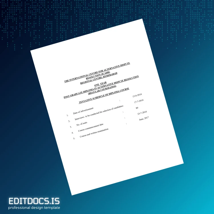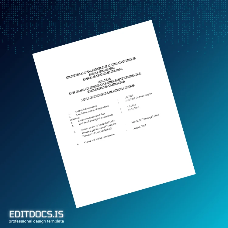 How to Create Your India International Centre for Alternative Dispute Resolution Post Graduate Diploma in Alternative Dispute Resolution Template (Word & PDF) in Minutes