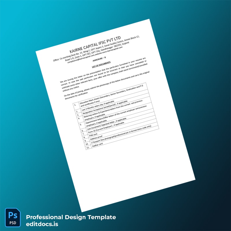 Editable India Karine Capital ISC Pvt Ltd Employment Verification Letter Template (Word & PDF) 6 page