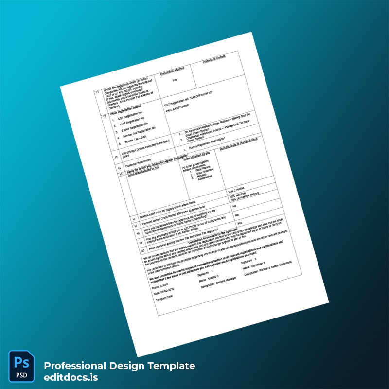 The India Kerala State Electronics Development Corporation Ltd Vendor Registration Form Template in Word and PDF formats is an indispensable resource for professionals seeking a simplified and efficient registration process. Designed for businesses and freelancers who require a precise, editable registration certificate swiftly, this template mitigates the common challenge of navigating complex documentation.