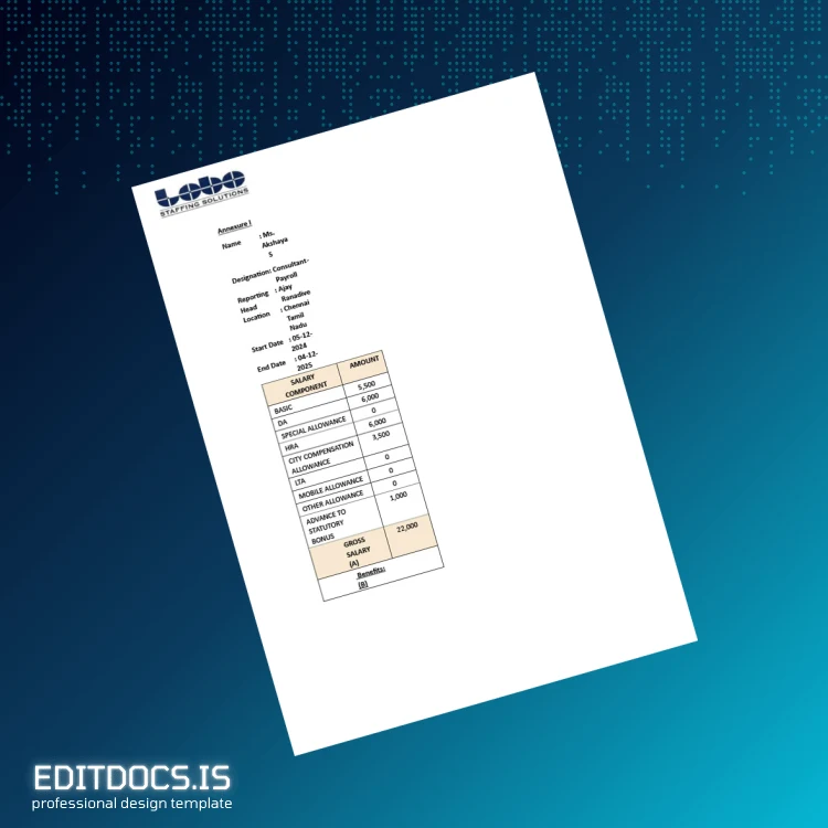 Editable India Lobo Staffing Solutions Pvt Ltd Employment Verification Letter Template (Word & PDF) 3 page