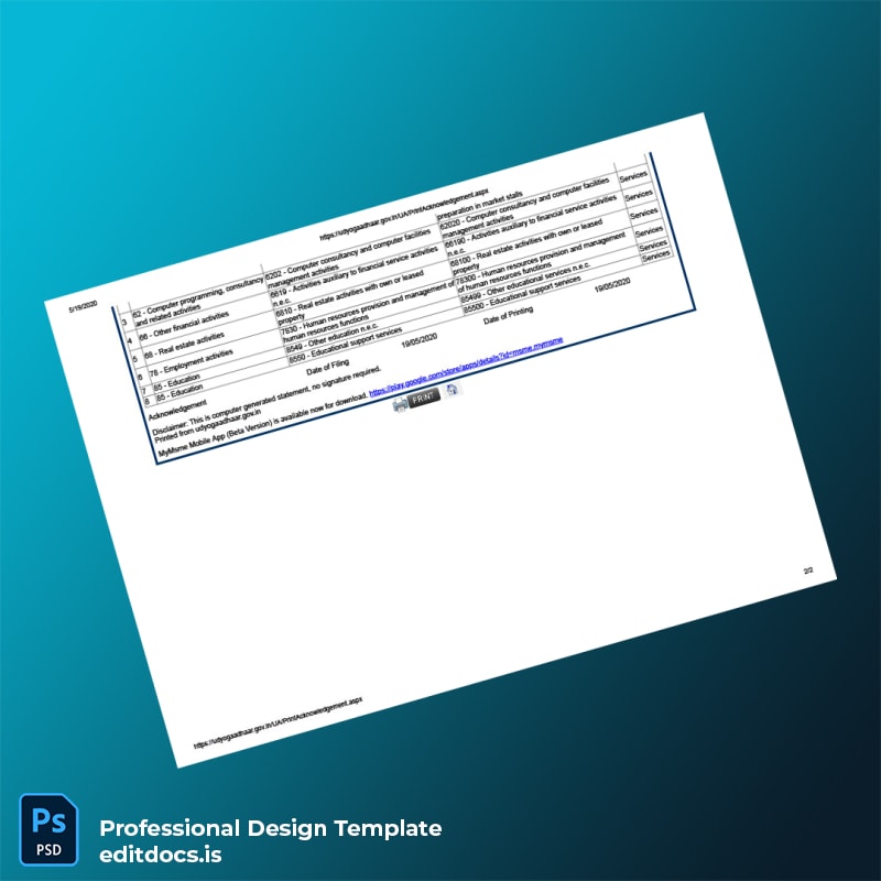 Be the first to review “Editable India Ministry of Micro Small and Medium Enterprises Udyog Aadhaar Registration Certificate Template (Word & PDF) 2 page”