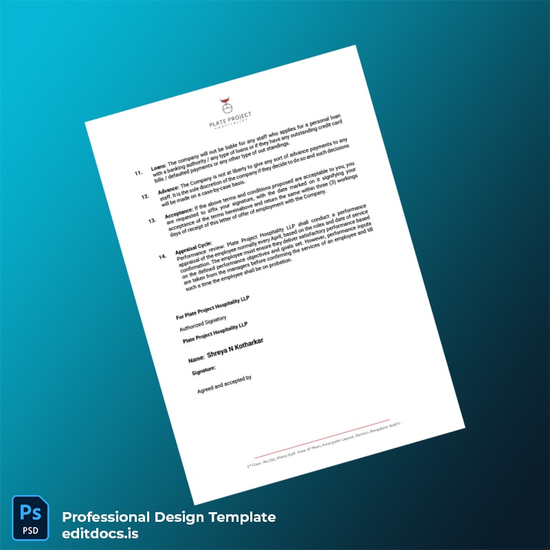 The India Plate Project Hospitality Employment Verification Letter Template (Word & PDF) is designed to simplify your official documentation needs by providing a fully editable solution that ensures accuracy and professionalism. Whether you’re an HR professional, a hospitality manager, or a payroll specialist, this template equips you with the tools to generate proof of employment documents quickly and efficiently, saving valuable time while maintaining compliance.