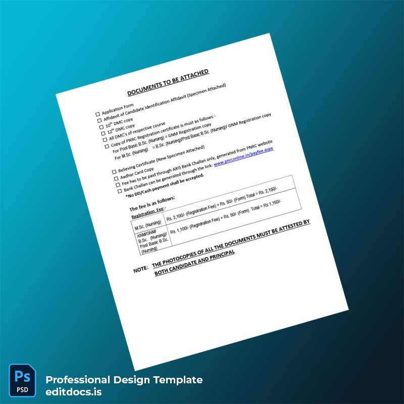 Editable India Punjab Nurses Registration Council Registration Form Template (Word & PDF)
