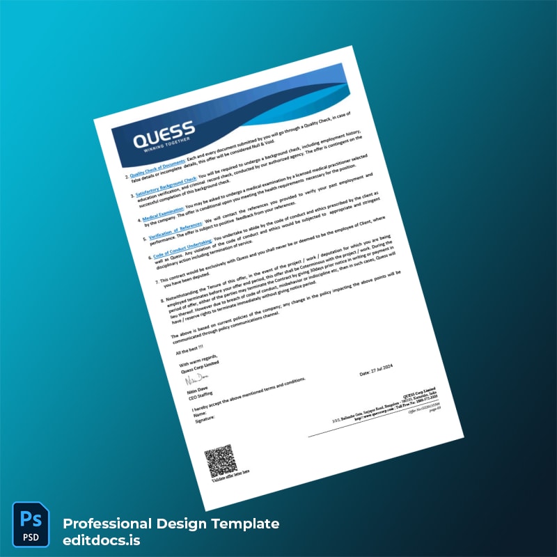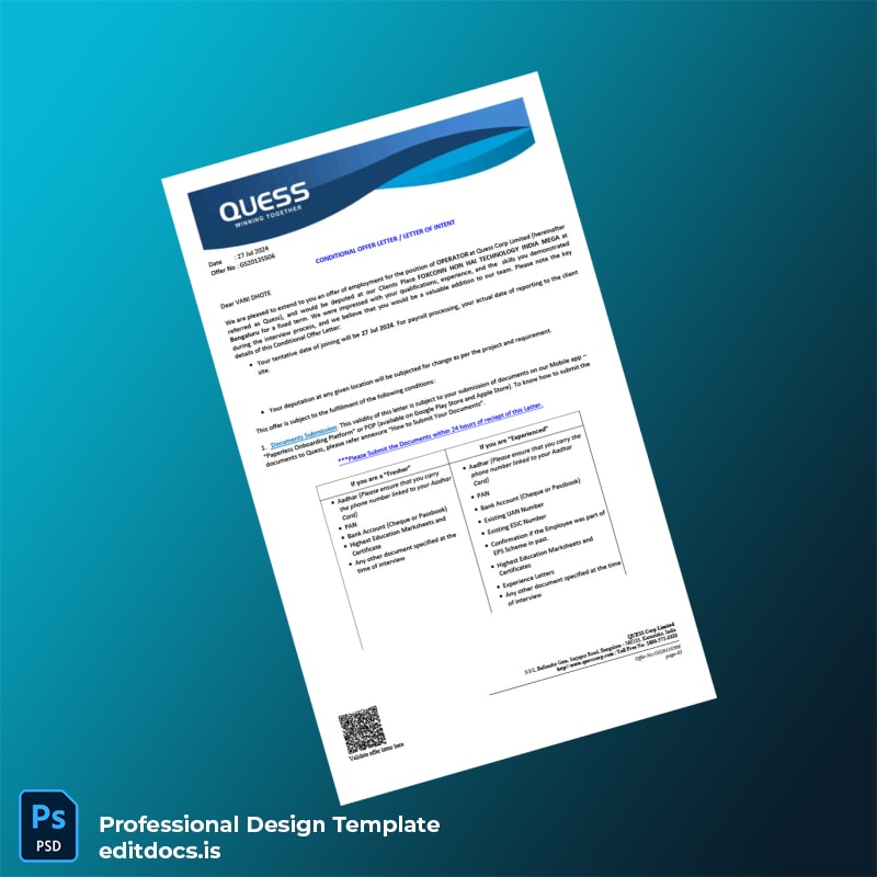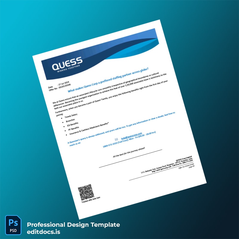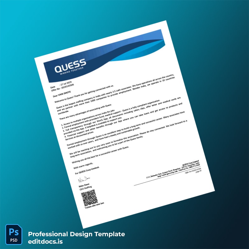 Don’t let employment confirmation slow down your career or business operations. With the Editable India QUES Employment Verification Letter Template, you gain a fully customizable, professional-grade document at your fingertips. Start editing now and experience hassle-free employment verification like never before.