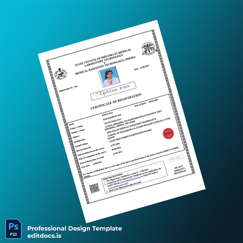 Streamline Your Certification Process with the India State DMLT_DMRT Examination Board Registration Certificate Template (Word & PDF)