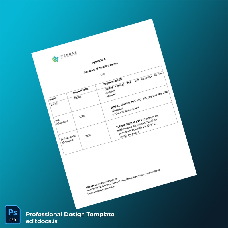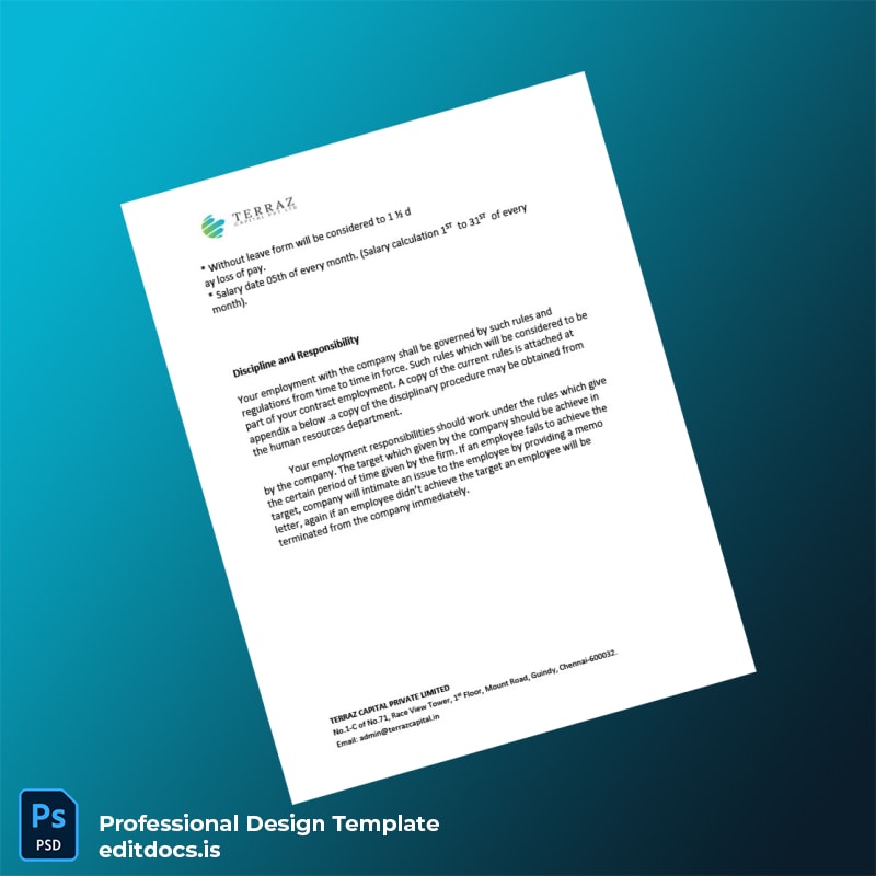 Empower your HR documentation process and enhance operational efficiency with this editable India Terraz Capital Pvt Ltd employment verification letter template. Download now to create seamless, professional employment proofs that inspire confidence and meet strict verification demands with ease.
