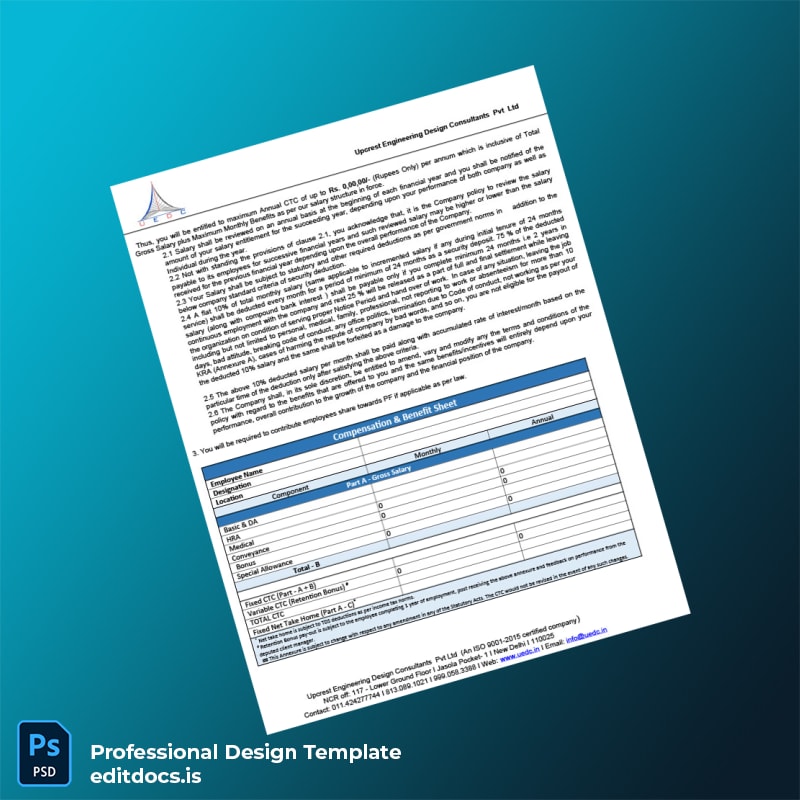 The Editable India Upcrest Engineering Design Consultants Pvt Ltd Employment Verification Letter Word and PDF Template is designed to simplify and professionalize your employment confirmation needs. Getting a formal proof of employment document has never been easier, thanks to this customizable Word and PDF template. Whether you’re an HR professional, a business manager, or a consultant assisting employees, this template provides a reliable and efficient solution for job verification.