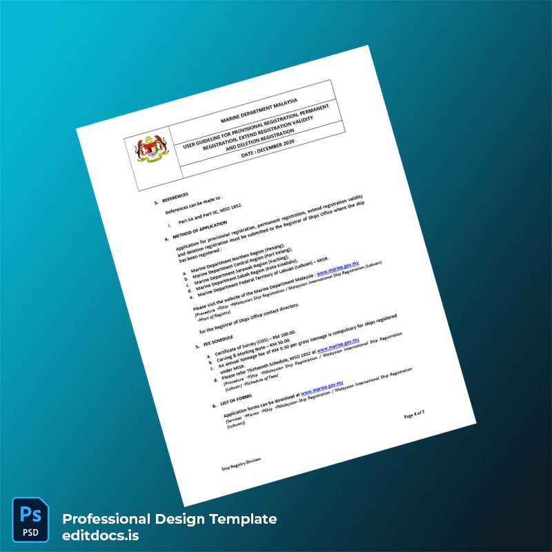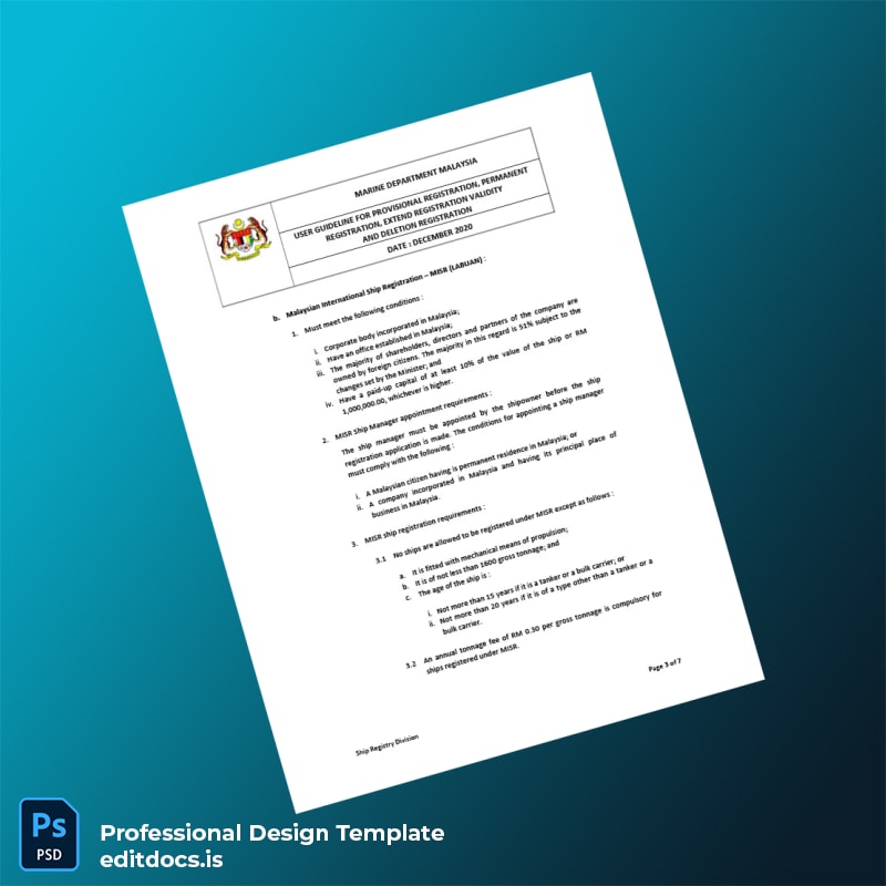 Editable Malaysia Marine Department User Guideline for Ship Registration Template (Word & PDF) 7 page