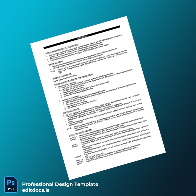 Easily edit all essential fields including your name, PAN number, address, and issue date to fit your specific requirements. The template supports both Word and PDF formats, providing compatibility for diverse editing preferences and workflows.