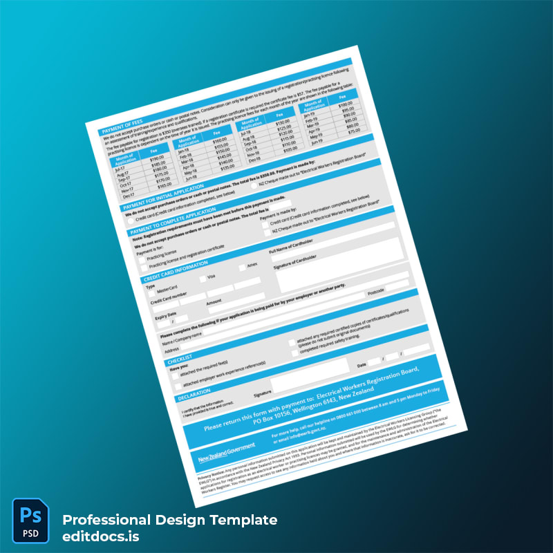 Editable New Zealand Electrical Workers Registration Board Practising Licence Application Template